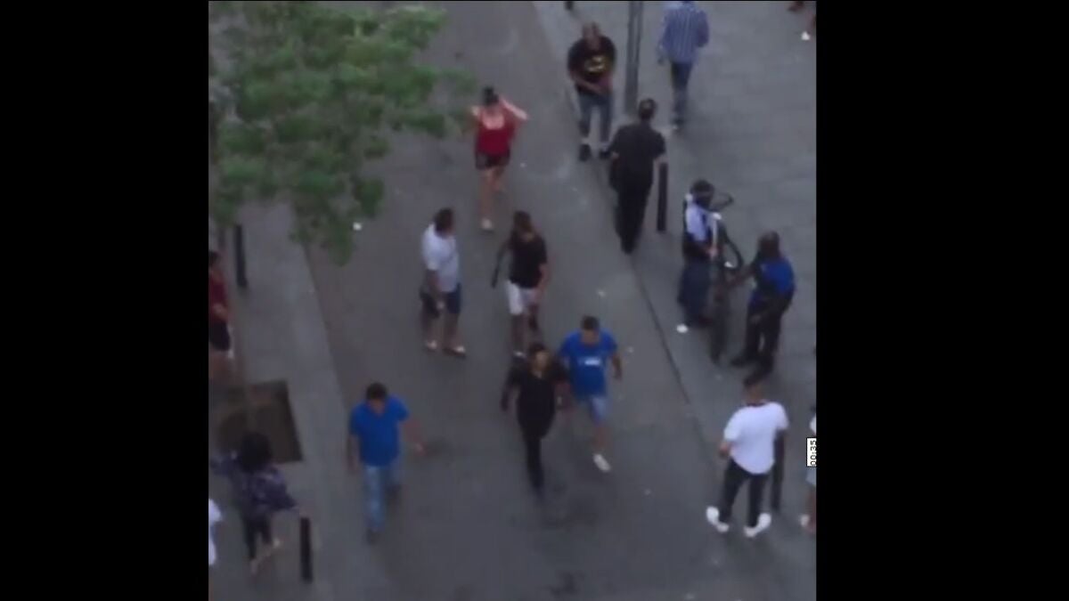 En el vídeo se aprecia como un hombre que sostiene un bate de beisbol en las manos corre persiguiendo a otro que logra escapar. Los hechos han ocurrido en el barrio barcelonés de el Raval.