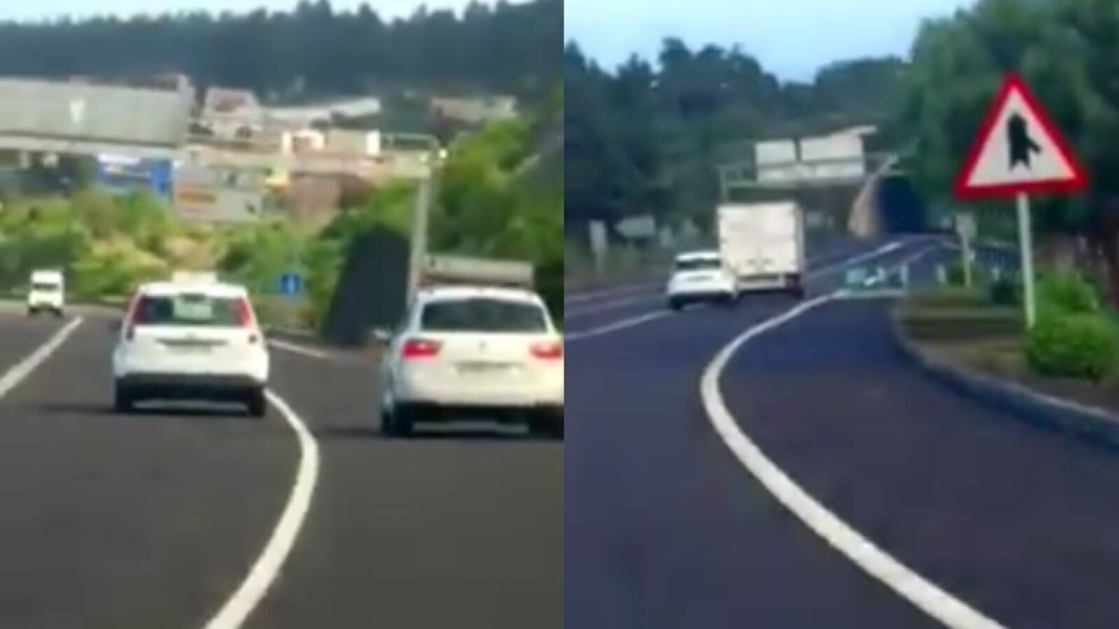 La escena tuvo lugar en la nueva vía que conecta El Tanque con diversos núcleos urbanos, en Tenerife. Allí un coche, que circulaba en sentido Puerto de la Cruz y conducido por un hombre de avanzada edad, adelantó el línea continua a un vehículo permaneciendo varios minutos en sentido contrario.