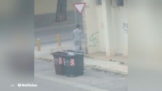 Graban dibujando una nueva esvástica al presunto autor de más de 700 pintadas nazis en Valencia