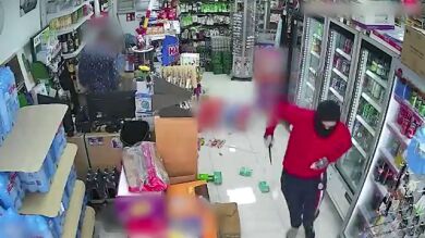 Entra encapuchado con un cuchillo de grandes dimensiones. Salta el mostrador con dificultades y resbalando e intimida al trabajador para sustraer más de 500 euros. Todo quedó registrado por las cámaras de seguridad de un comercio de Torrevieja.