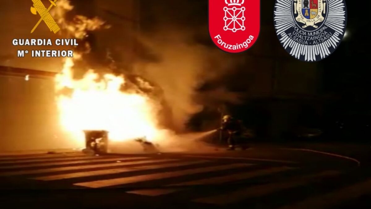 Grupos de personas han lanzado esta madrugada botellas y otros objetos a la Policía Municipal de Alsasua, a la Policía Foral y a la Guardia Civil, uno de cuyos vehículos ha resultado dañado, y han quemado asimismo tres contenedores.