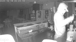 Las cámaras de seguridad del restaurante captaron a un individuo que entro a robar con una sudadera, una gorra y una mascarilla para ocultar su identidad dos veces en la misma noche.
