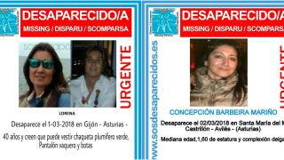 Lorena Torre, de 40 años, desapareció el pasado jueves por la noche en Gijón, y Concepción Barbeira, de 1,60 y complexión delgada, el pasado viernes tras salir de su casa en San Adriano (Castrillón).
