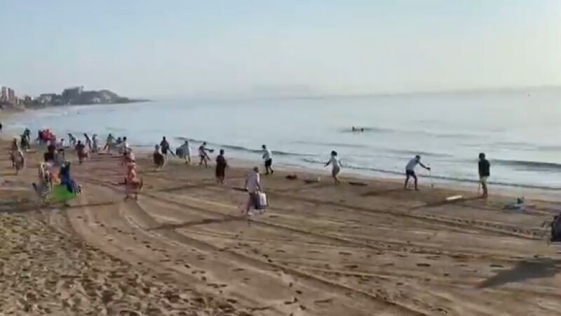 En Oropesa del Mar, en Castellón, varios bañistas corren para conseguir sitio en primera línea de playa. Los vecinos aseguran que esto ocurre cada día a primera hora de la mañana. Ante esta situación, el ayuntamiento ha decidido prohibir la entrada a la playa hasta las 9:00 horas. Aun así, esta medida no ha evitado que se produzcan enfrentamientos por conseguir un buen sitio. Por su parte, los turistas denuncian que muchos de estos bañistas dejan la toalla y la sombrilla y se van.