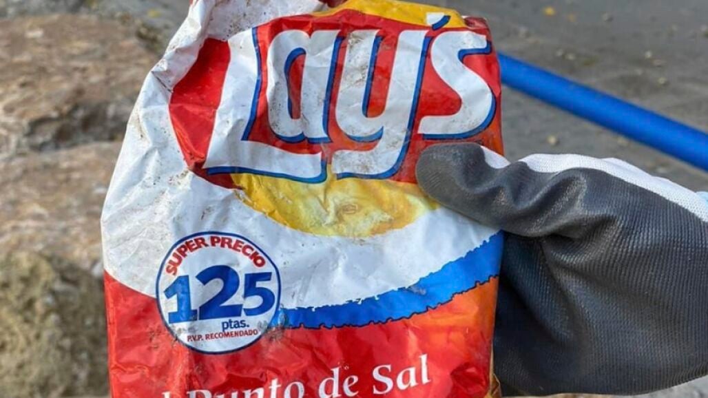 Un grupo de ecologistas ha hallado una bolsa de patatas Lay's de hace más de 22 años con el precio marcado en pesetas y denuncian que "nos estamos cargando el mundo".