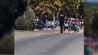 "Ese nota tiene un cuchillo", se escucha decir a un viandante que presencia la escena. Han sido necesarios una decena de agentes de la Policía Local y Nacional para reducir y detener a ese individuo que ha desatado el pánico en la zona.