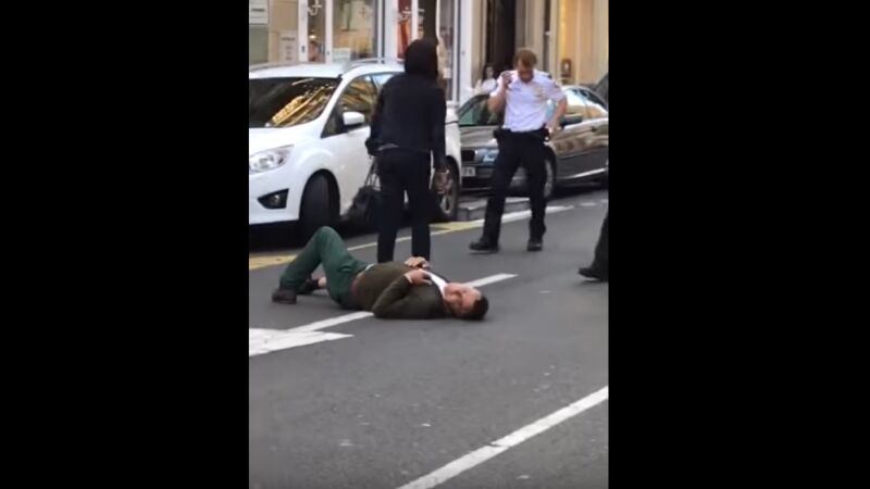 El hombre, al ver que le habían colocado un 'cepo' por estacionar en una plaza reservada para discapacitados, se tiró al suelo y comenzó a fingir discapacidades físicas. Muchos viandantes grabaron en vídeo la cómica escena.