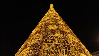Los bomberos del Ayuntamiento de Madrid rescataron anoche a un hombre que escaló hasta la cima del árbol de luces de Navidad instalado en la plaza de Callao.