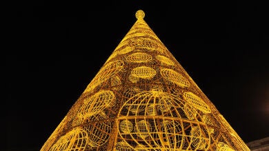 Un hombre se sube a la cima del árbol de Navidad de Callao