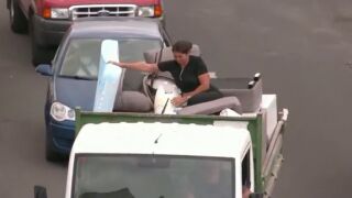 El colchón, el sofá y algunos muebles son algunos de los pocos enseres que los vecinos de La Palma han podido salvar de la lava del volcán de Cumbre Vieja. Entre lágrimas, numerosos vecinos intentan transportar con los vehículos cargados los efectos personales que se han podido llevar.