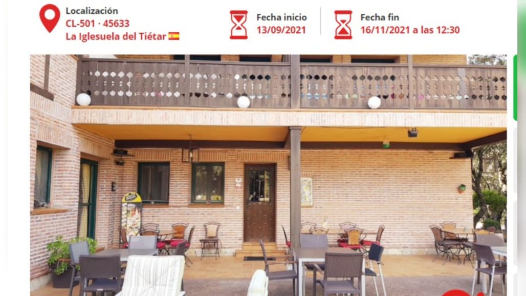 La subasta extrajudicial finaliza el 16 de noviembre a las 12:30, en menos de dos meses y está abierta desde mediados de este mes.