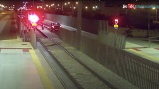 Los hechos ocurrieron sobre las 21.40 horas de la noche del sábado 31 de octubre. Los vigilantes de seguridad de Metro Málaga fueron los que dieron aviso a la Policía Local, que se personaron en el lugar y comprobaron que el turismo que se encontraba sobre las vías del metro tenía tres neumáticos reventados.