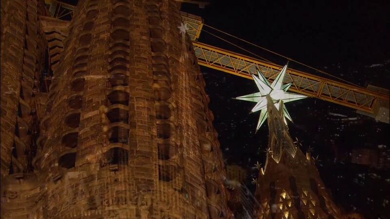 Así se ha iluminado la estrella de la Sagrada Familia de Barcelona