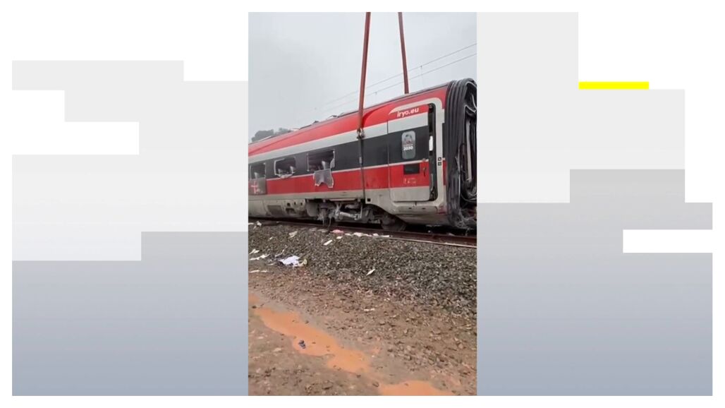 En el vídeo se aprecia un recorrido por el tren Iryo, en el que se puede ver que los cinco primeros coches están intactos. El que descarriló en primer lugar es el sexto, y ya muestra desperfectos, igual que los dos siguientes. También el octavo, que es el vagón del que se desprendió el bogie que ha aparecido en un riachuelo.