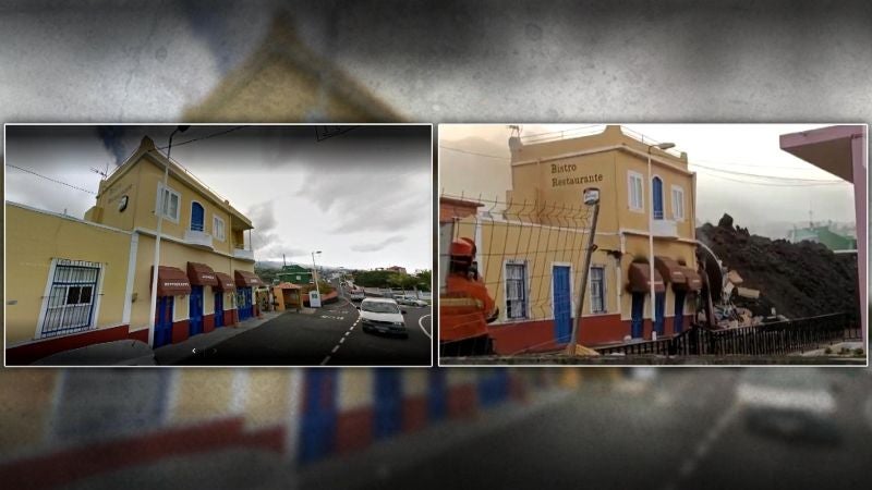 El antes y el después de un restaurante arrasado por la lava en La Palma