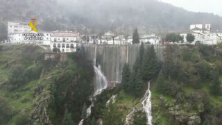 La situación en el municipio es insostenible. Las imágenes aéreas muestran la magnitud de lo que se vive en la sierra de Grazalema. Su barranco se ha convertido en cascadas. El alcalde Carlos García aseguró que el acuífero había "colapsado".