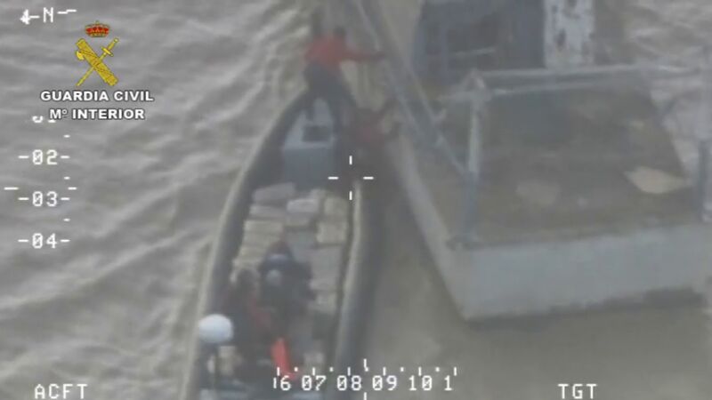 Tras grabar mediante un helicóptero cómo la embarcación se acercaba a una camaronera preparada para transportar la droga de una embarcación a otra, los agentes del Servicio Marítimo interceptaban el alijo de droga.