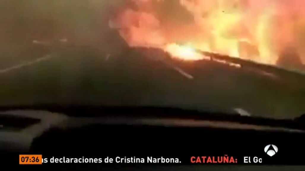 El incendio de Verín deja imágenes de auténtico pánico al llegar el fuego a una de las carreteras