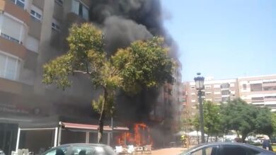 Una gran columna de humo negro se podía ver este jueves por la mañana desde varios puntos de Valencia después de que una furgoneta de reparto se incendiase por causas que aún se desconocen. En las imágenes del vídeo se puede ver cómo la gran columna de humo negro ascendía muy cerca de un bloque de edificios.