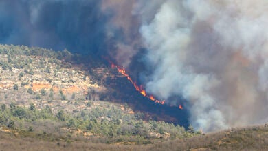 El incendio forestal de Villanueva de Viver avanza sin control y de forma "muy violenta". Ha arrasado ya entre 800 y 1.000 hectáreas, aunque todavía no se ha podido perimetrar el incendio por completo.