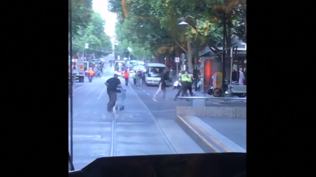 Un indigente atropelló con un carrito de compra a un atacante que se disponía a acuchillar a la policía tras herir a tres personas en Melbourne, Australia. Su heroica acción fue grabada y una organización benéfica inició una campaña de recaudación de fondos para ayudarle.