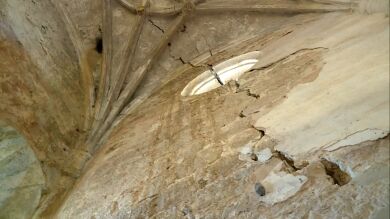 Desde Antena 3 Noticias subimos con Javier Maisterra, uno de los impulsores de esta iniciativa, a la primera planta del templo. En ese lugar y recorriendo de arriba a abajo un gran muro de metro y medio de grosor encontramos una grieta en la que fácilmente cabe una mano. "Está muy deteriorada. Si no actuamos rápidamente consolidándola tenemos un serio riesgo de que se venga abajo", explica.
