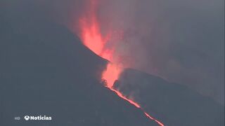 La estructura del cráter se ha desmoronado, lo que ha provocado dos nuevas coladas de lava encima de la anterior más rápida y fluida en el volcán de La Palma. En total, el volcán ya tiene cuatro bocas emitiendo lava.