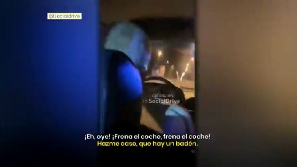 El conductor, pese a los gritos que hay en el interior del coche, no articula palabra y sigue conduciendo en silencio, negándose a parar aunque la policía se lo pide. Uno de los acompañantes grita por la ventanilla a los agentes que el conductor no quiere frenar: "¡Frena, frena! No quiere ¡Frena, hombre!".