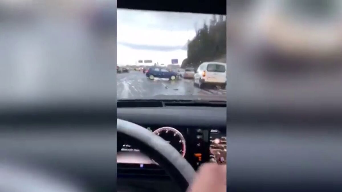 Una intensa granizada causa una colisión múltiple en la AP-9 en Santiago