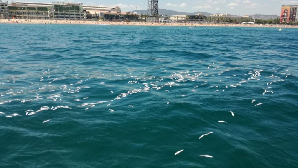 Investigan la aparición de centenares de peces muertos flotando frente playa Barceloneta