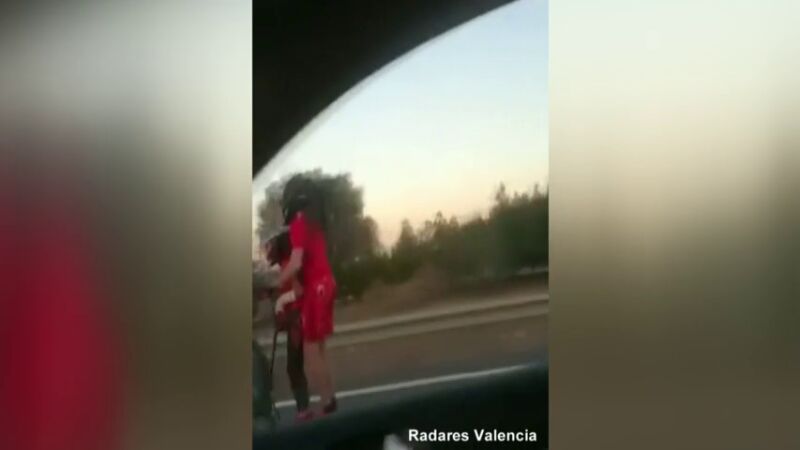 La Guardia Civil trata de identificar al conductor de un patinete eléctrico que circulaba a gran velocidad por la autovía V-23, a la altura de Sagunto (Valencia), con un menor a bordo y que ha sido grabado por el conductor de otro vehículo.