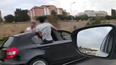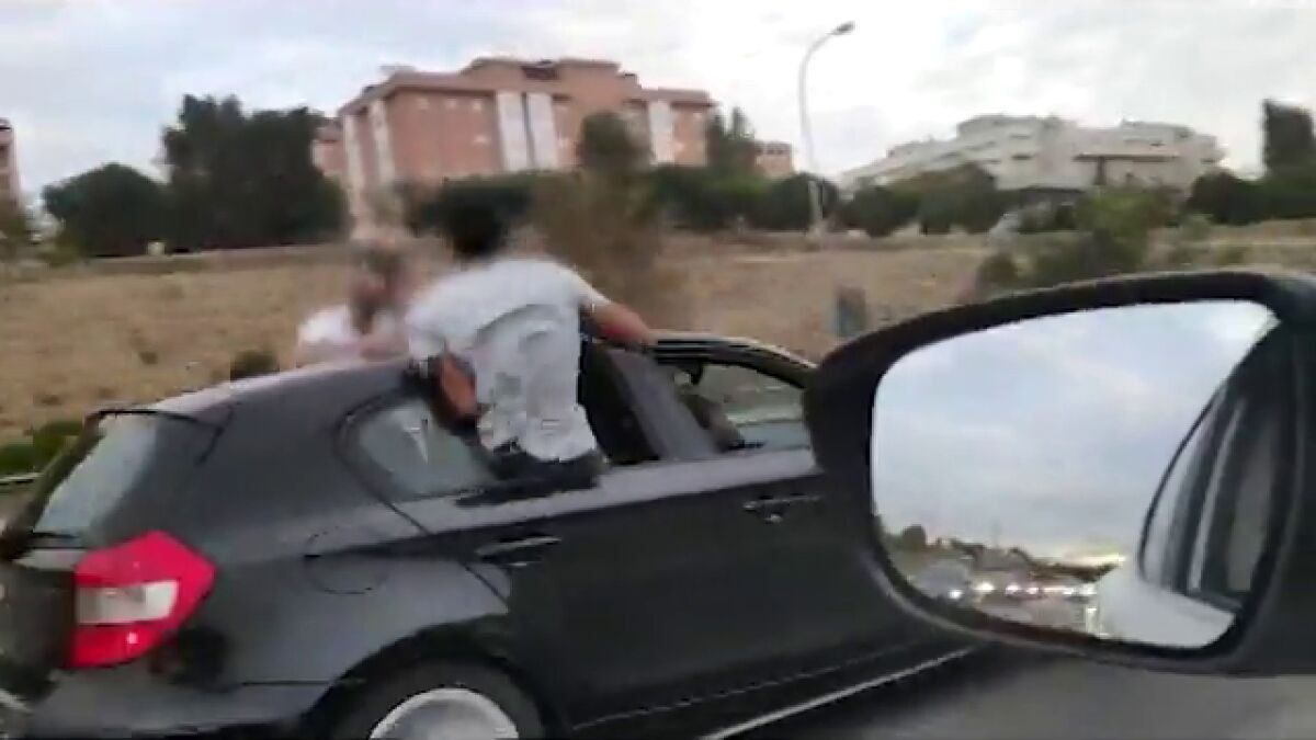 En concreto, tal y como se puede observar en las imágenes, un par de jóvenes sentados sobre las ventanillas traseras del vehículo, con medio cuerpo del coche, eran vistos por el resto de conductores a primera hora de la mañana mientras dicho coche avanzaba veloz por el carril izquierdo.