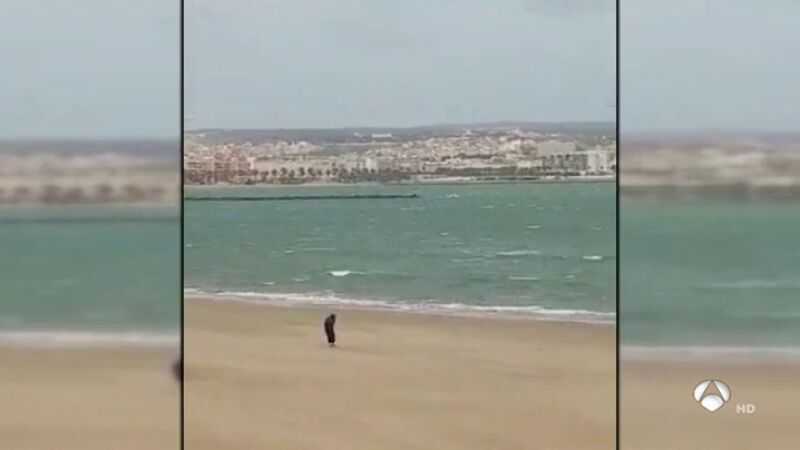 En ese momento se oye la voz de un hombre, posible agente que se hallaba en las garitas que controlan la entrada de pateras e inmigrantes irregulares por la zona, que dice "No veas el viento que pega, madre mía", y se pregunta "¿Y qué hace el moro ese en medio de la arena?", mientras le grita "Moro, vete de ahí, que te va a llevar el viento, capullo".