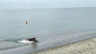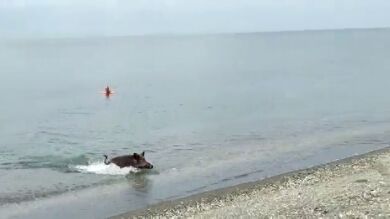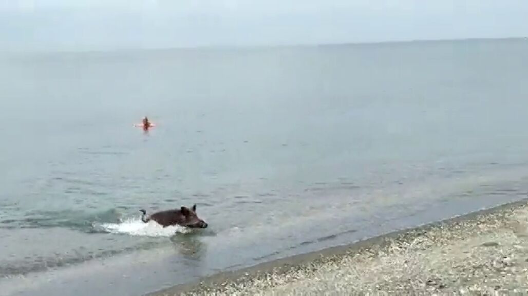 El jabalí fue grabado por uno de los bañistas que estaba allí presente y que, como se puede ver en el vídeo, captó cómo nadaba entre las olas y salía a toda prisa hacia unos matorrales para ocultarse.