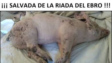 Los voluntarios del santuario Gaia de animales, situado en Camprodón (Girona), han logrado salvar a una cerdita de la crecida del río Ebro a su paso por la provincia de Zaragoza.