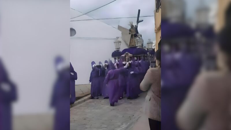 Las prisas no son buenas. Que se lo digan a la cofradía de Nuestro Padre Jesús Nazareno de Baena (Córdoba). Debido a la previsión de lluvia, la comitiva procesional de este Viernes Santo había aligerado el paso cuando la cruz que porta la imagen de Jesús Nazareno se enganchó a un cable de electricidad y salió disparada.