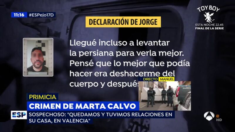 - Espejo Público ha tenido acceso en exclusiva a la declaración del presunto homicida de Marta Calvo