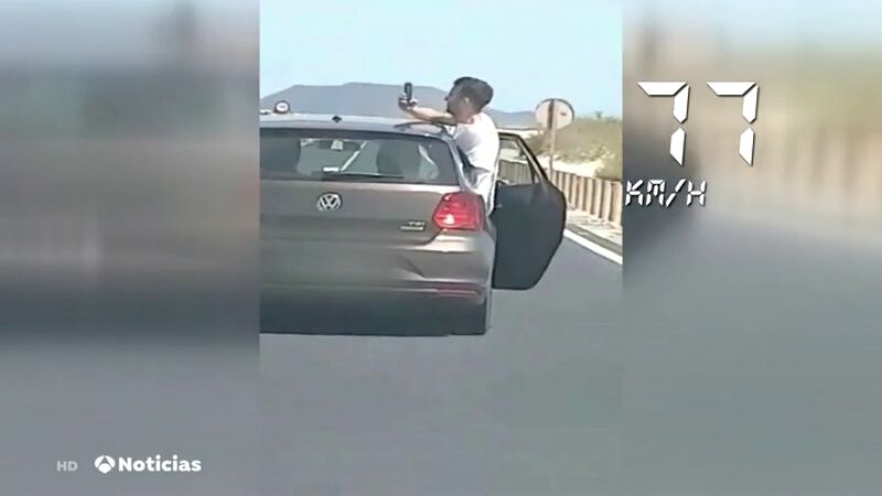 El hombre sacó medio cuerpo fuera del coche en el que viajaba a más de 75 kilómetros por hora para grabarse en la carretera.