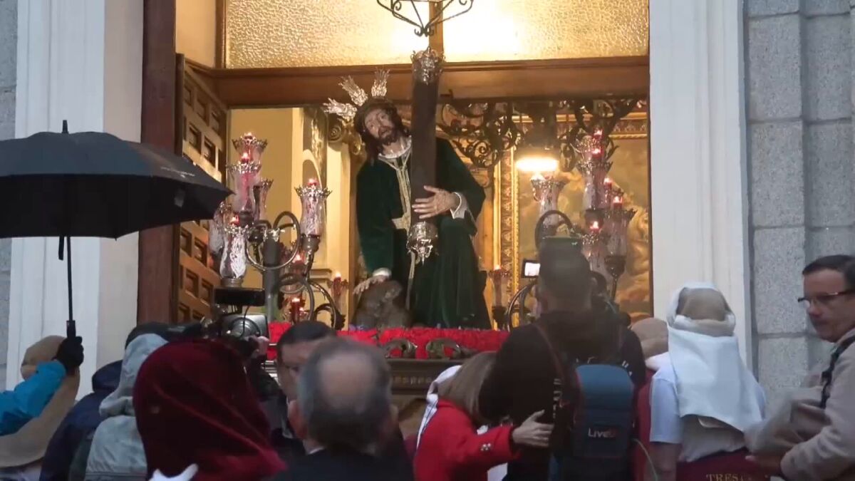 La lluvia no perdonaba y varias procesiones tuvieron que suspender su recorrido en Miércoles Santo, como la del Santísimo Cristo de las Tres Caídas, en Madrid.