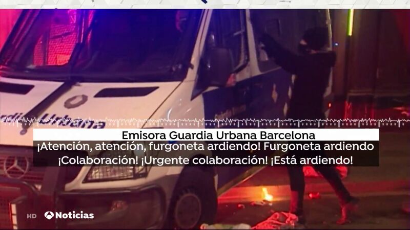 Sale a la luz la llamada de socorro de la Guardia Urbana atacada en Barcelona durante los terribles disturbios del sábado. Los radicales incendiaron un furgón policial con un agente dentro.