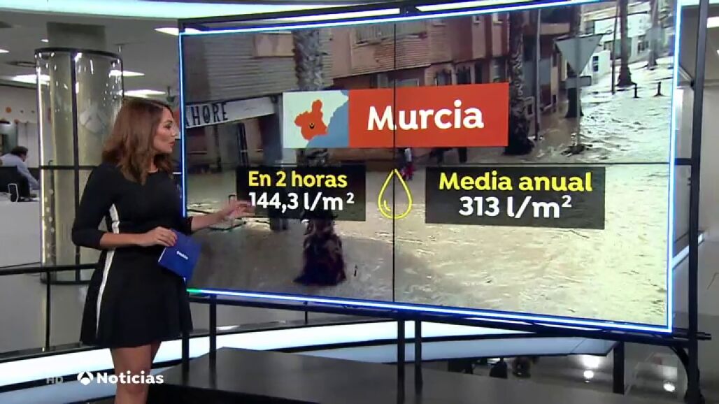 En Murcia han caído 144 litros en tan solo dos horas. En este espacio de tiempo llovió la mitad de lo que llueve en todo el año.