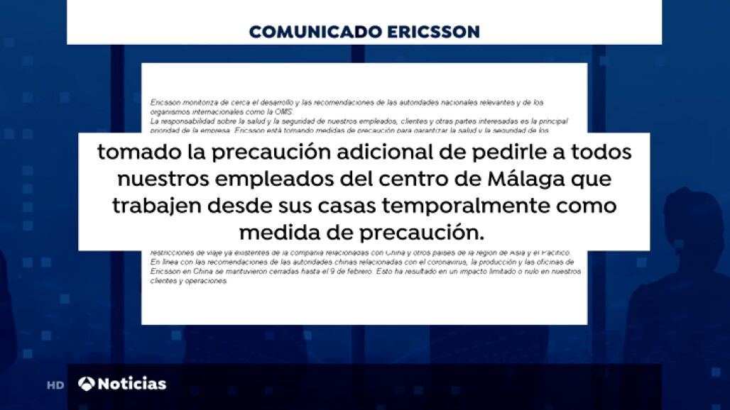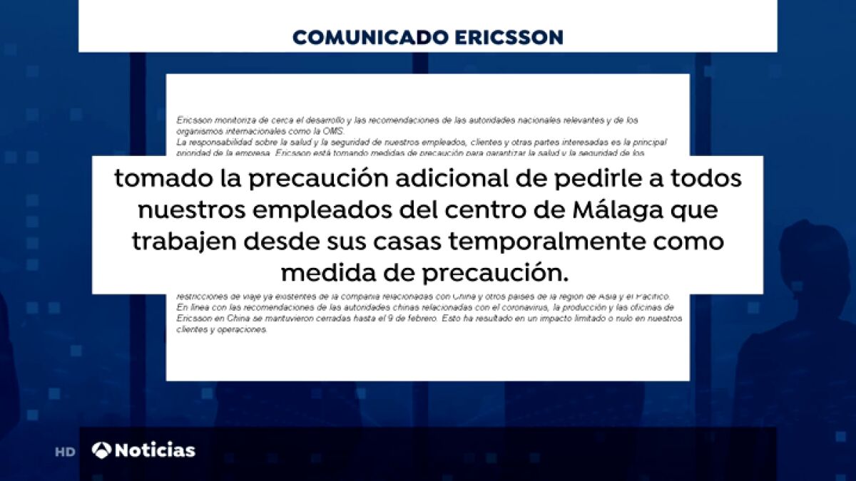 En Málaga hay incertidumbre entre las empresas y ya una de ellas, la empresa Ericsson, ha decidido este miércoles que 200 trabajadores se vayan a sus casas y teletrabajen desde allí.