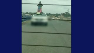 Un conductor circula con otro hombre subido en un tobogán en el techo del coche, ambos han sido detenidos