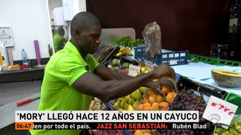 Mory tiene 28 años y hace doce que llegó en patera a España, era la primera vez que veía el mar. Como para tantos otros inmigrantes los inicios fueron "muy duros"; pasó por la construcción, aprendió carpintería... Ahora ha logrado regentar su propio negocio, un puesto de fruta en el mercado que lleva el nombre con el que le conocen todos sus clientes: El Morenito.