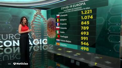 República Checa y Bélgica son los países que más casos registran por cada 100.000 habitantes: tienen más de 1.200 y 1.000, respectivamente, en los últimos 14 días. Les siguen Francia, Polonia, Italia, Portugal, Países Bajos y España, que baja por primera vez de los 500 desde el 2 de noviembre.