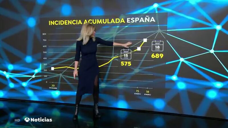 Desde el pasado viernes, la incidencia acumulada de coronavirus en España ha crecido más de 100 puntos: de 575 a 689 casos por cada 100.000 habitantes. La curva no ha dejado de crecer desde las navidades y por eso, muchos expertos llevan ya semanas pidiendo el confinamientodomiciliario, aunque más breve que el de marzo.