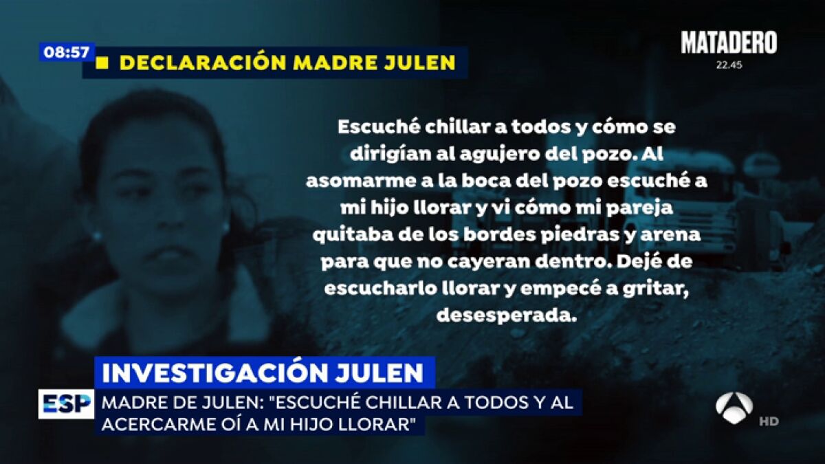 La madre de Julen: "Escuché a mi hijo llorar y vi cómo mi pareja quitaba de los bordes piedras y arena para que no cayeran dentro"