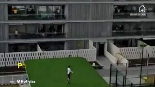 En el vídeo se ve a un joven dando clase de fitness en el patio comunitario mientras muchos vecinos le imitaban desde sus balcones. Ha sido un ejemplo más de los muchos que se repiten estos días en toda España para intentar que el tiempo pase lo más rápido posible.