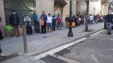 La parroquia de Santa Anna de Barcelona no da abasto ante las largas colas de personas que acuden a pedir comida