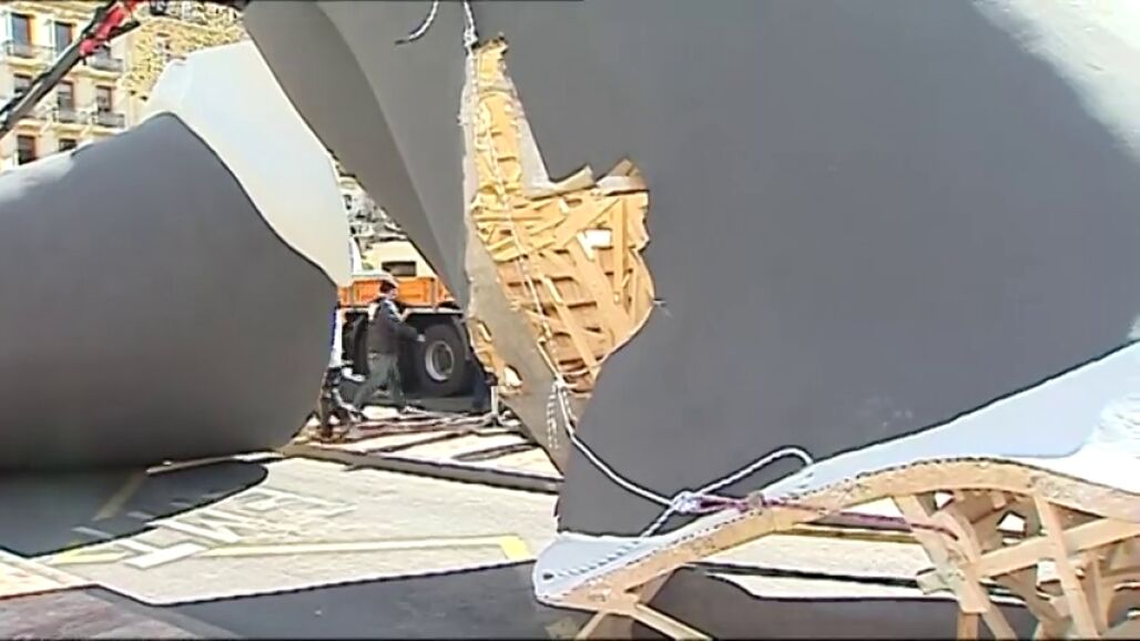 La torre de metal sobre el que se va a asentar el ninot ya está instalado. Ahora hay que examinar los daños y si se pueden reparar. Se trata de una falla de madera, obra de Manolo Martín y José Ramón Espuig, que girará 360 º cada día. Tiene como título "Açò també passará" y tiene como elemento central a una mujer joven que está meditando.